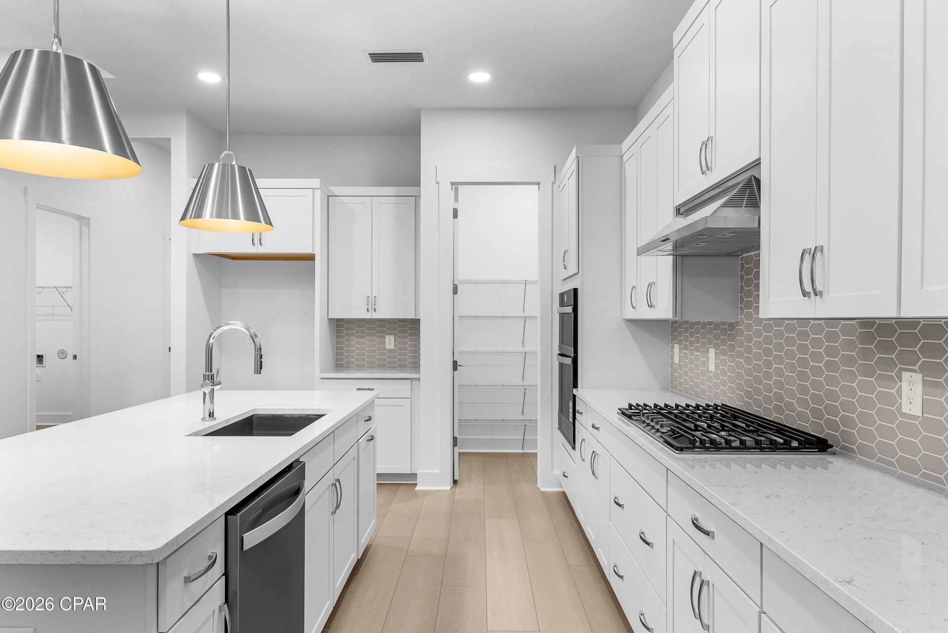 Single-story new Toll Brothers home located on a private preserve home site. Construction estimated completion August. 4-bedroom, 3-bathroom residence boasts an inviting office/study room with glass doors, working from home, arts and crafts or play room. As you enter the home, you are greeted by a grand foyer with soaring 12-foot ceilings, setting the tone for the open and airy feel that flows throughout the entire space. The remainder of the home features 10-foot ceilings, adding to the sense of spaciousness and elegance. Luxury vinyl plank flooring throughout the home and tile in bathrooms. The open gourmet kitchen is outfitted with stainless steel appliances, sleek quartz countertops, designer tile backsplash, pendant lights, spacious pantry and ample cabinet space for all your culinary needs. Whether preparing a family meal or entertaining guests, this gourmet kitchen is sure to impress. The primary suite is a true retreat, featuring a luxurious en-suite bath complete with a separate tile shower and a large soaking tub perfect for unwinding after a long day. With an upgraded multi-slide stacked door in the great room that opens up fully for indoor and outdoor living to a covered patio with pavers. Located in a gated community with resort style amenities including large pool, lap pool, clubhouse, fitness center, pickleball courts, tennis court, playground, multi-purpose field and more. Short drive to public beach access, Pier Park shopping, dining and fun entertainment, airport, future FSU/TMH medical campus, future West Bay Center with Publix, and recreation outdoor activities at Frank Brown Park. Some pictures are not of actual home, but same home plan. Explore everything this exceptional home has to offer and schedule your appointment today.