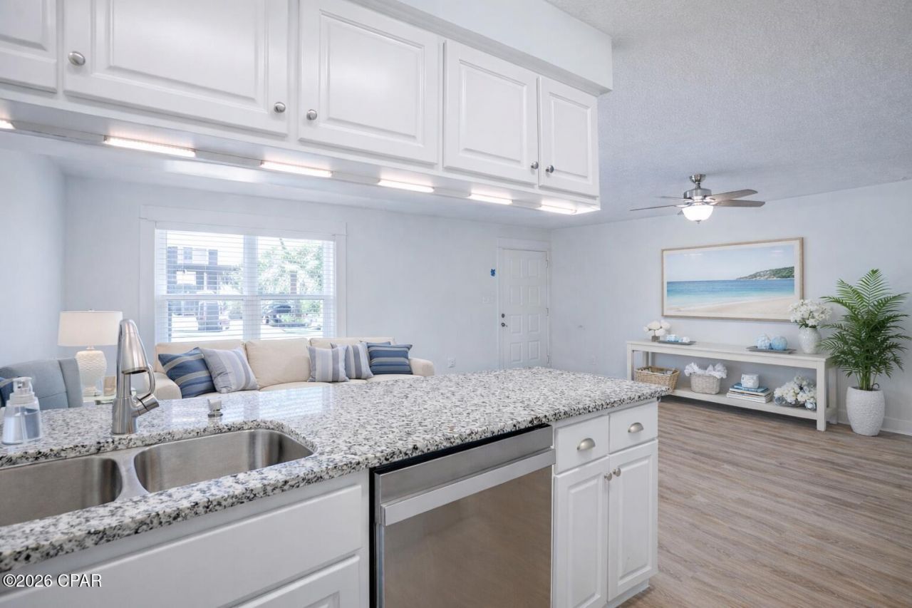 Beautifully updated 2BR | 2BA GROUND FLOOR condo with side lagoon views in Greenwood Estates - Unit 5B! Enjoy easy coastal living with NO STAIRS and a serene side water view right from your front porch. This fully updated, move-in ready home features a bright coastal palette, all new luxury trim and finishes, granite countertops throughout, and new stainless steel appliances. The open-concept layout offers great natural light, while both spacious bedrooms include their own full bathrooms--ideal for guests or rental flexibility. Washer and dryer included for added convenience. What truly sets this unit apart is its rare combination of updates, location, and lifestyle at this price point--perfect for a primary residence, second home, or long-term investment. Located in the quiet, lagoon-front community of Greenwood Estates, residents enjoy a relaxed setting with access to a community pool, boat dock, and beautifully maintained grounds. Boating enthusiasts will appreciate onsite gated boat & trailer storage ($50/month), along with several side boat dock access spaces for easy loading and unloading, plus multiple nearby public boat ramps for effortless days on the water. Perfectly positioned in Upper Grand Lagoon, one of Panama City Beach's most desirable residential areas, you're just minutes from the beach, marinas, dining, shopping, and St. Andrews State Park. Additional Highlights: ¢ LOW monthly HOA: Includes everything except power & internet (NO special assessments). ¢ NEW roof & storm-grade windows (2021/2022). ¢ NEW stainless steel kitchen appliances. ¢ Fresh coastal interior paint throughout. ¢ New luxury trim & finishes. ¢ Granite countertops throughout. ¢ LVP flooring throughout (NO CARPET). ¢ Updated lighting, ceiling fans & fixtures ¢ Major systems updated & well maintained. ¢ NO immediate replacement concerns. ¢ Energy-efficient components for lower utility costs. ¢ The building's exterior stairs were just replaced and will be painted next (already included in the approved budget). Truly turn-key, updated, and ready for immediate enjoyment. Schedule your showing today!