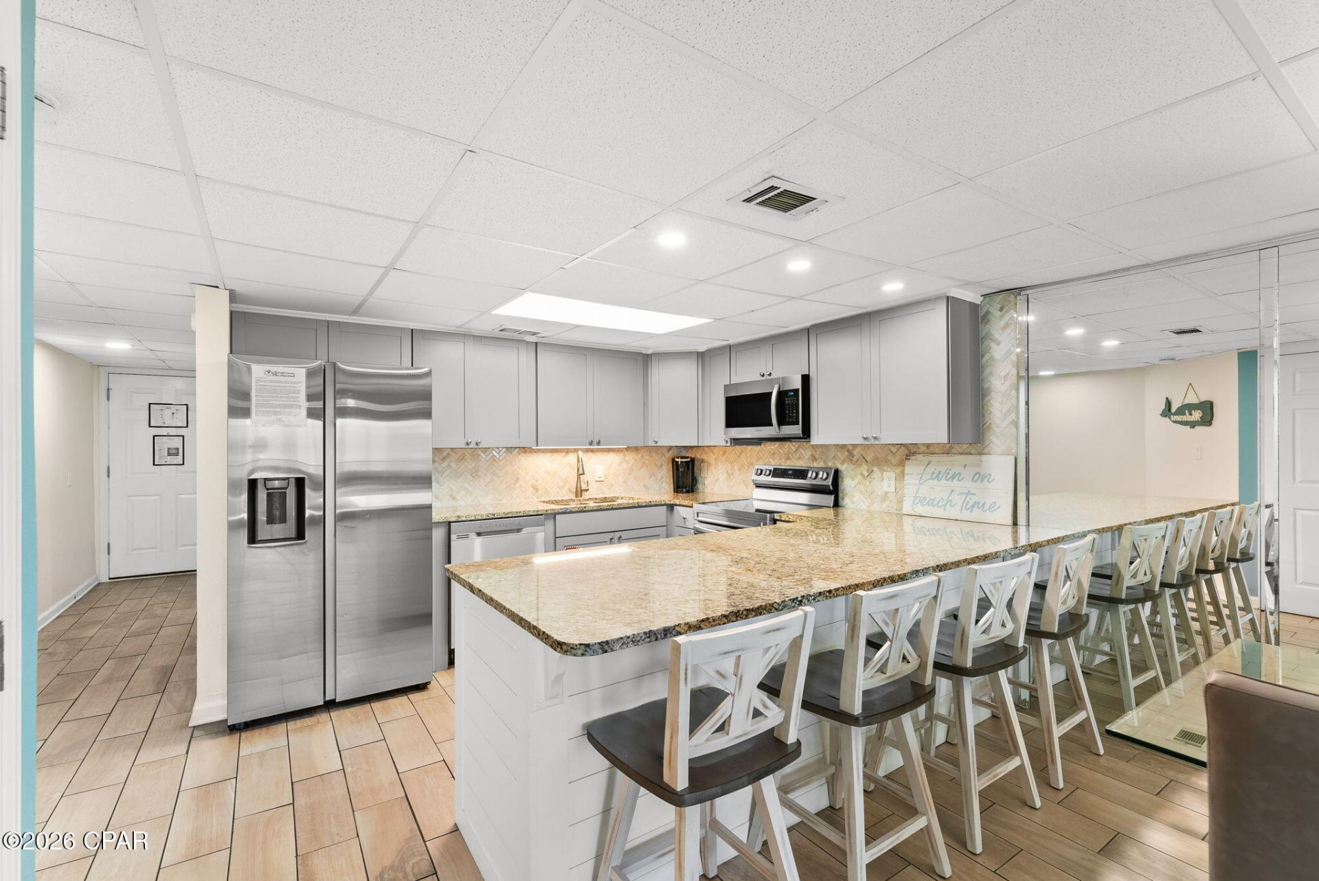 THIS CAN'T BE REAL. . . THE ONLY 4 BEDROOM FULLY FURNISHED CONDO ON THE GULF UNDER $800,000!!! The sellers have meticulously cared for this unit for 33 years, and have spared no expense in making sure the next owner will have a true RENTAL BEAST! Over $100,000 invested in the last few years which includes all new: kitchen, flooring throughout, bathrooms, HVAC, water heater, washer/dryer, hurricane doors and windows, paint, custom ceilings downstairs, and the list goes on! This unit is 100% rental ready as is (with all assessments paid in full and none upcoming), but if a new owner would just add their own flare with some new furniture, this unit would be unlike anything else available on the beach. The neighbor's unit just sold for $615k and was located in the back of the complex with limited gulf views. This one is just a few feet from the pristine white sandy beaches and has AMAZING views from the living room and primary bedroom. That unit had $86k in rental income last year, so needless to say. . . with these updates and this view, this unit truly has unlimited potential and could surpass those numbers easily! Sugar Beach is a highly desirable gated community due to its prime location. Park at your door, no elevators, and right in the heart of the historic Thomas Dr. Restaurants, Bars, Minigolf, Go-karts, Ice Cream, and the list goes on. And all of this is within 1-2 blocks - so park your car and no need to touch it again. And did I mention the new Tootsies Beach Honky-Tonk opening 2 doors down? That right. . . The concert scene is already lighting up with numerous Big Name Headliners performing this Spring and Summer!!! In addition to the best location in town, this gem of a community offers a pool, clubhouse, tennis, pickleball, shuffleboard courts, and gated private beach access. And if you need to simply wind down after a long day enjoying the best that PCB has to offer, Sugar Beach has an expansive peaceful greenspace unlike any other community on the beach. Get lost in tranquility as you watch the giant Koi Fish, turtles, and sea birds at the large sprawling pond. And if all of the above wasn't enough, TAKE NOTE that this is one of the only pet-friendly complexes on the ENTIRE BEACH. That's right. . . this offers an extreme competitive advantage, and much higher income! Please look at all the other 4 bedrooms available, and then come fall in love with this truly special opportunity (priced $200K less than the next). With some of the lowest HOA's of all the comps, this one is a CAN'T MISS!!!